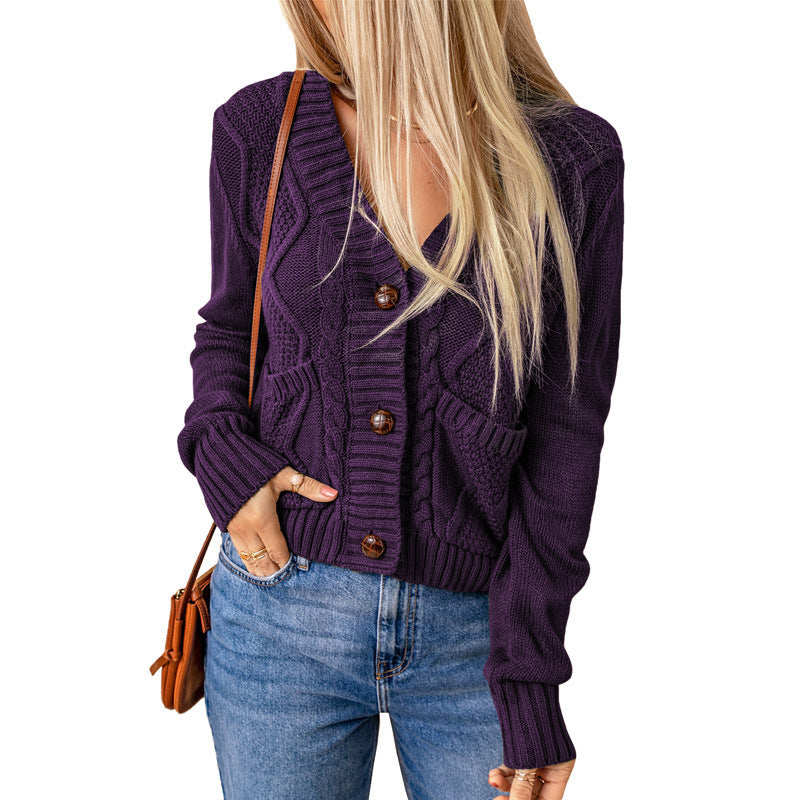 The Knitted Cardigan with Pockets is designed with a button texture that enhances its visual appeal. The long sleeves offer versatility, making it suitable for various occasions, from casual outings to more sophisticated gatherings. With practical pockets, you can easily store your essentials like keys, phone, or wallet, adding a touch of convenience to this fashionable piece.